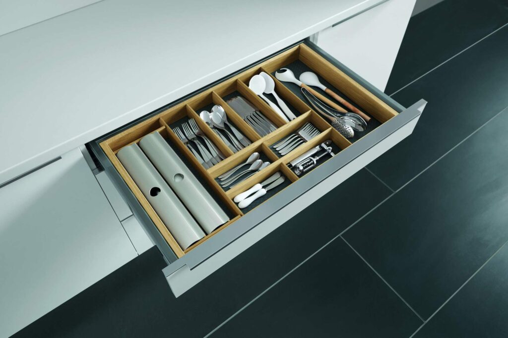 I cassetti per le posate non sono mai abbastanza, ma quanto è necessario dipende dall’uso quotidiano della cucina. Per una famiglia numerosa, possono servire più cassetti divisi tra posate da tavola e utensili da cucina. I separatori regolabili sono accessori per cucina perfetti per mantenere tutto in ordine e a portata di mano.